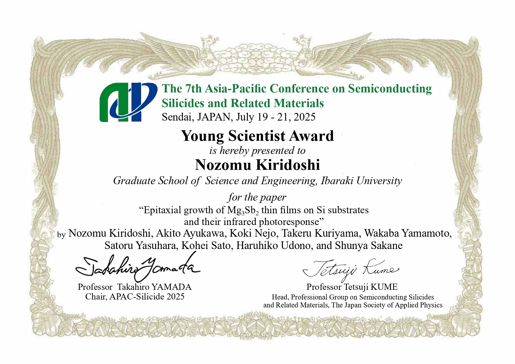 Young Scientist Award, Poster (APAC-Silicide 2025) |