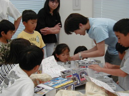 | お手伝いの茨大生も今日は先生です。 「ここはこのようにすれば良いんですよ」と やさしく教えていたようです。 |